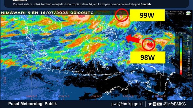 Analisis BMKG soal Bibit Siklon Tropis 98W dan 99W