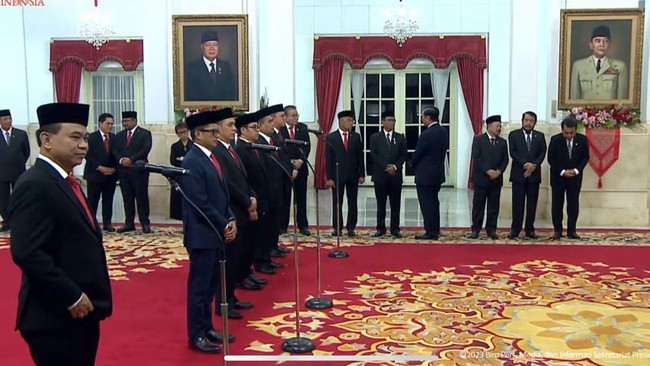 Lima Wamen yang dilantik Jokowi hari ini ialah Wamenkominfo Nezar Patria, Wamendes Paiman Raharjo, Wamenlu Pahala Mansury, Wakil Menteri BUMN Rosan Roeslani dan Wamenag Saiful Dasuki. Pelantikan dilakukan di Istana Kepresidenan, Jakarta Pusat, Senin (17/7/2023).