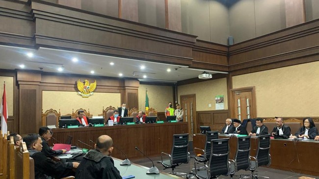 Pantauan detikcom di di PN Tipikor, Jalan Bungur Besar Raya, Jakarta Pusat, Senin (17/7/2023), sidang lanjutan dugaan suap dan gratifikasi Lukas Enembe dimulai sekitar pukul 10.41 WIB. Lukas Enembe tak hadir di ruang sidang.