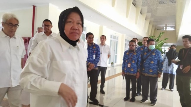 Menteri Sosial (Mensos), Tri Rismaharini, melakukan kunjungan kerja di Sentra Terpadu Pangudi Luhur (STPL), Bekasi. Risma mengecek langsung kondisi penghuni rumah susun (rusun) di lokasi rehabilitasi sosial ini.