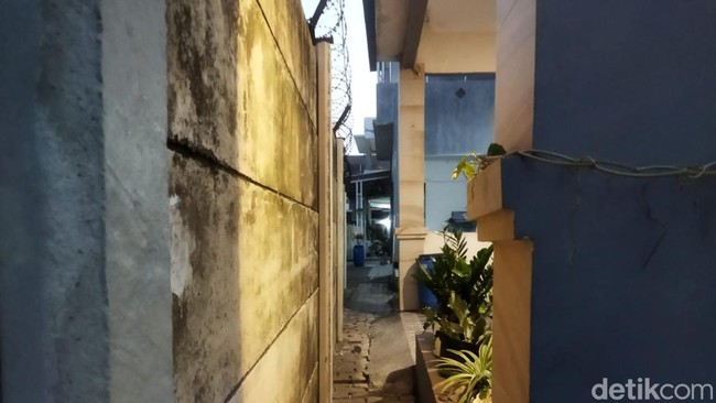 Pantauan detikcon di Perumahan Green Village, Perwira, Bekasi, Senin (17/7/2023), terlihat tembok panjang berdiri kokoh menutup halaman rumah warga. Hanya tersisa sekitar 20 cm yang digunakan untuk akses jalan.
