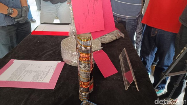 "Ini ada barang buktinya, disiram dengan minyak 'gondo mayit', lalu dimasukkan air di sini, lalu disiram," ujarnya.