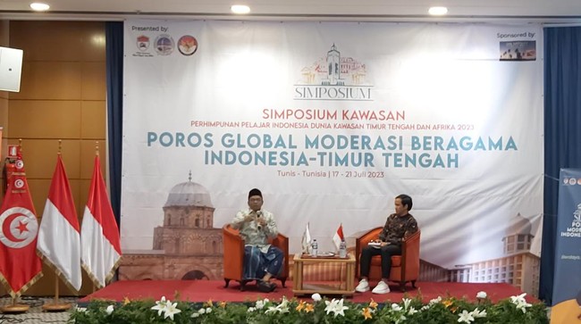 Untuk diketahui, acara Simposium PPIDK Timtengka 2023 ini mengusung tema 'Poros Global Moderasi Beragama Indonesia-Timur Tengah'. Simposium digelar di Tunisia dan dihadiri perwakilan mahasiswa Indonesia di Timur Tengah dan Afrika, baik secara langsung maupun virtual.