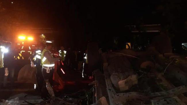 Dilaporkan 3 orang penumpang Fortuner berinisial BWS (19), CC (19), dan ARH (19) tewas di lokasi.