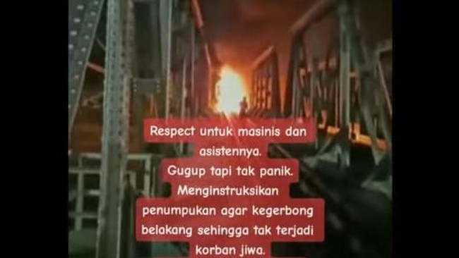 Video yang menunjukkan orang berjalan di kobaran api yang dinarasikan sebagai masinis KA Brantas, yang kecelakaan di perlintasan Jalan Madukoro Raya, Semarang, viral. Masinis bernama Budi itu disebut berjasa menginstruksikan para penumpang bergeser ke gerbong belakang untuk evakuasi.