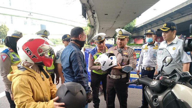 "Membagikan helm kepada pengendara yang tertib," ujar Kasat Lantas Satlantas Jakbar Kompol Maulana Jali Karepesina dalam keterangannya, Jumat (22/7/2023).