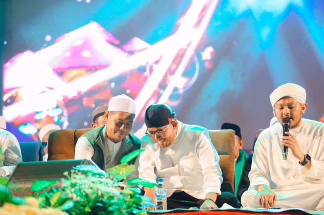 Bupati Sumenep Achmad Fauzi Wongsojudo menghadiri acara milad kedelapan Majelis Pemuda Berselawat At-Taufiq di Sampang, Jawa Timur, Jumat (21/7). Masyarakat berbondong-bondong hadir dalam acara yang dihadiri pengasuh Pondok Pesantren Karang Durin Karang Penang KH Ahmad Fauzan Zaini dan Gus Khoiron Zaini, serta menghadirkan penyanyi asal Mesir Mostafa Atef itu.