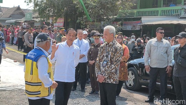 Presiden Joko Widodo (Jokowi) meninjau langsung perbaikan Jalan Solo-Purwodadi. Jokowi bercerita sejak ia kecil jalan yang dilewatinya setiap hari itu selalu rusak.