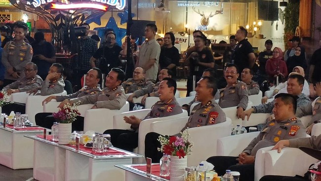 Mendengar hal tersebut, Kapolri Jenderal Listyo Sigit Prabowo beserta pejabat utama lainnya melemparkan senyum dan tertawa mendengar Jiung.