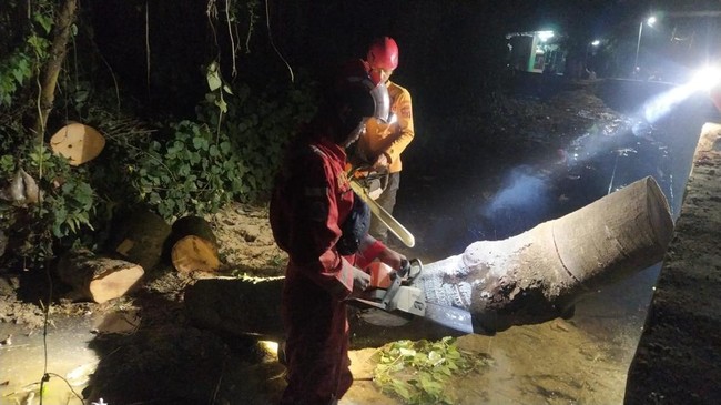 "Pohon yang tumbang jenis Kicopong dengan tinggi 15 meter dan diameter 15 sentimeter. Pohon tumbang terjadi akibat kondisi akar pohon yang sudah lapuk," kata Theofilo.