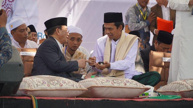 Karena itu, UAS mengaku tak menduga bakal duduk bersebelahan dengan Muammar. UAS mengaku merinding.
