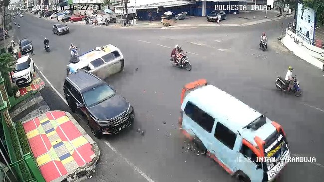 Dilansir detikSumbagsel, berdasarkan rekaman kamera CCTV yang diterima, terlihat kedua angkot tersebut saling salip dari arah Pasar Tengah melintas di Jalan Raden Intan. Salah satu angkot itu juga menghantam satu unit mobil Fortuner yang terparkir di pinggir jalan.
