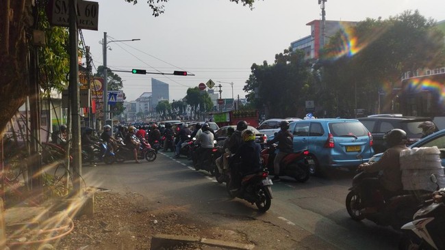 Akibat kemacetan ini, beberapa pengendara sepeda motor juga terlihat naik ke atas trotoar. Namun pihak Polantas menghimbau para pengendara untuk tidak menggunakan trotoar untuk pejalan kaki.