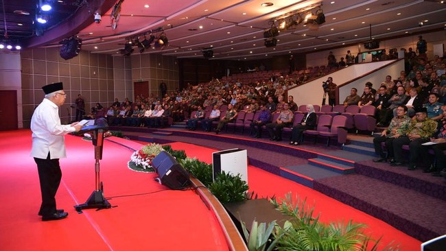 Ma'ruf menyampaikan kuliah umum itu di hadapan peserta Program Pendidikan Reguler Angkatan (PPRA) 65 dan Program Pendidikan Singkat Angkatan (PPSA) 24 di Auditorium Gadjah Mada, Lemhannas RI. Ma'ruf pun mengucapkan selamat kepada peserta karena telah mengikuti pendidikan.