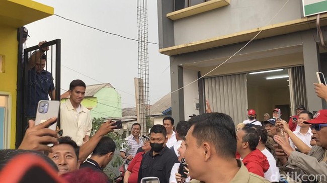 Tampak ratusan relawan di lokasi langsung menyambut Kaesang. Terlihat juga stand-up comedian Babe Cabita dan artis Vicky Prasetyo.