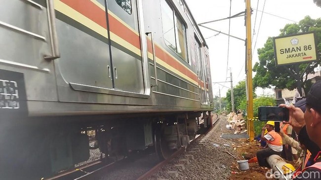 Petugas telah selesai melakukan perbaikan dengan memasang tiang listrik arus atas (LAA) sementara di jalur Pondok Ranji menuju Stasiun Kebayoran, Jakarta Selatan. Jalur kereta saat ini sudah bisa dilintasi secara normal.