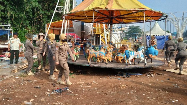 "Diketahui hasil pantauan deteksi dini, beberapa wahana permainan telah dibongkar pemilik secara mandiri, kemarin," kata Sekretaris Dinas (Sekdis) Satpol PP Kabupaten Bogor Iman Wahyu Budiana dalam keterangannya, Selasa (25/7/2023).