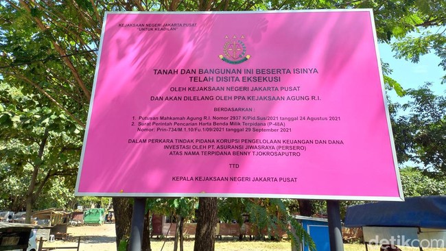 "TANAH DAN BANGUNAN INI BESERTA ISINYA TELAH DI SITA EKSEKUSI OLEH KEJAKSAAN NEGERI JAKARTA PUSAT DAN AKAN DILELANG OLEH PPA KEJAKSAAN AGUNG R.I.