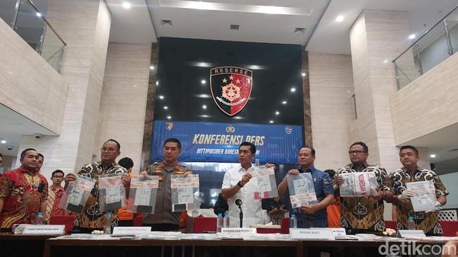 "Dari hasil pengungkapan ini, kita telah mengamankan 6 orang tersangka. Di antaranya adalah pemasok device elektronik ilegal tanpa hak, yaitu inisial P, D, E, dan B, dan semuanya adalah swasta. Kemudian kita juga mengamankan inisial F oknum ASN di Kemenperin dan juga inisial A oknum ASN di Ditjen Bea Cukai," kata Kabareskrim Polri Komjen Wahyu Widada di gedung Bareskrim Polri, Jumat (28/7/2023).