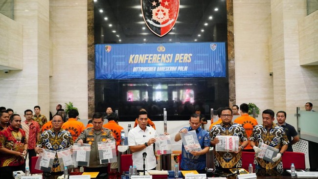 "Dari hasil pengungkapan ini, kita telah mengamankan enam orang tersangka. Mereka antara lain pemasok device elektronik ilegal tanpa hak, yaitu inisial P, D, E, dan B dan semuanya adalah swasta. Kemudian kita juga mengamankan inisial F, oknum ASN di Kemenperin, dan inisial A, oknum ASN di Ditjen Bea-Cukai," kata Kabareskrim Polri Komjen Wahyu Widada di gedung Bareskrim Polri, Jumat (28/7/2023).