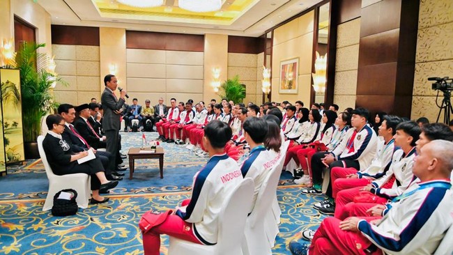 Di hadapan 51 atlet yang akan bertanding, Jokowi berpesan bahwa mereka akan bertanding membawa nama Indonesia di kancah internasional.