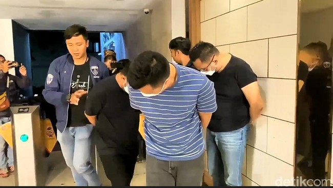 Ketiga tersangka tersebut tiba di gedung Direktorat Reskrimum Polda Metro Jaya, Sabtu (29/7/2023) pukul 20.10 WIB. Ketiganya tampak diborgol.