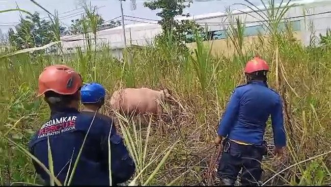 Setelah sekitar dua jam melakukan penanganan, sapi bisa dievakuasi tim rescue Damkar Kabupaten Bogor di kubangan di tengah rawa di dalam kawasan BRIN. Sapi kemudian dibawa dan diserahkan ke pesantren untuk disembelih.