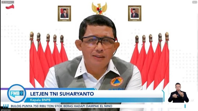 "Sebagai informasi saat ini kita berbicara dampak adanya El Nino, tetapi di belahan wilayah negara Indonesia contohnya kita akan berangkat ke sana memberikan bantuan di sana ada hujan es," kata Suharyanto dalam dialog bertema 'Waspadai Dampak El Nino' secara virtual, Senin (31/7/2023).