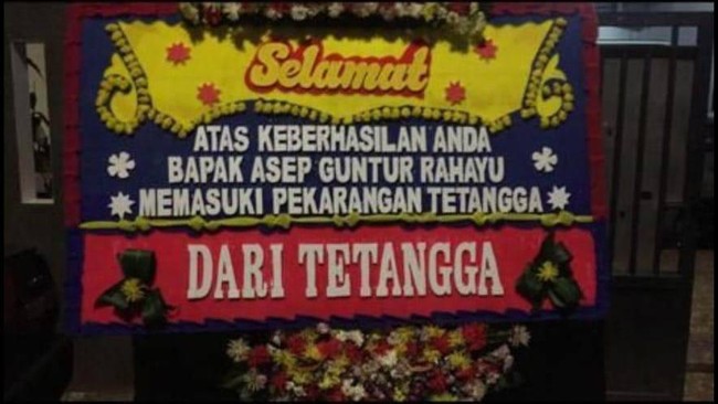 Adanya teror bunga ke pimpinan KPK itu diungkap Wakil Ketua KPK, Nurul Ghufron. Karangan bunga yang ditujukan ke rumah pejabat KPK, yakni ke rumah Direktur Penyidikan sekaligus Plt Deputi Penindakan dan Eksekusi KPK Brigjen Asep Guntur, Jumat (28/7) malam. Dalam karangan bunga ke rumah Asep termuat kalimat 'Selamat Atas Keberhasilan Anda Bapak Asep Guntur Rahayu Memasuki Pekarangan Tetangga'.