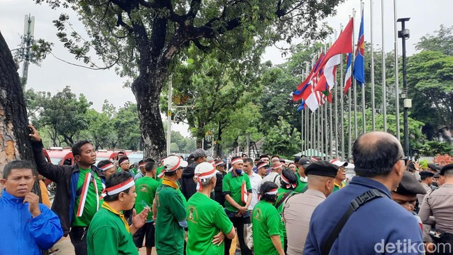Dari pantauan, Rabu (2/8/2023), massa awalnya berkumpul di lapangan Pasar Senen Blok VI, lalu menuju Kantor Pusat PD Pasar Jaya di Cikini, Jakarta Pusat, menggunakan mikrolet. Setelah itu, mereka bergerak ke Balai Kota. Tampak petugas kepolisian juga berjaga mengamankan aksi damai ini.