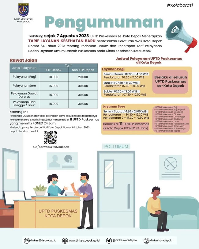 Mary mengatakan kenaikan itu berdasarkan terbitnya Peraturan Wali Kota (Perwal) Nomor 64 tahun 2023 tentang Pedoman Umum dan Penetapan Tarif Pelayanan Badan Layanan Umum Daerah (BLUD) Puskesmas Kota Depok. Perwal itu diterbitkan pada 31 Juli 2023 yang menyebutkan kenaikan tarif berlaku pada 7 Agustus 2023.
