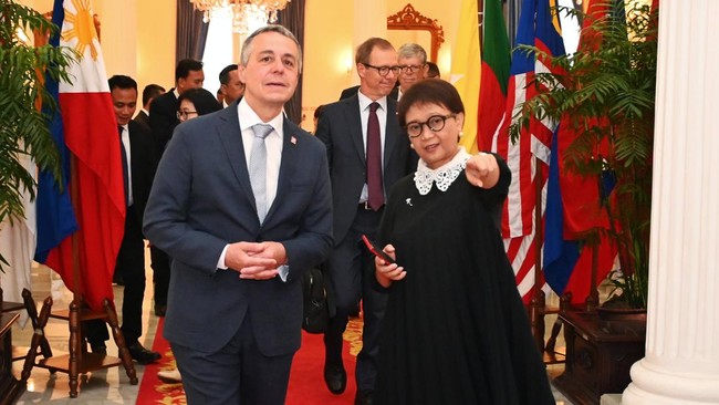 "Seperti yang saya sebutkan sebelumnya, Swiss adalah salah satu mitra ekonomi penting Indonesia di Eropa. Swiss adalah mitra terbesar kami di EFTA (Asosiasi Perdagangan Bebas Eropa), dan juga salah satu investor Eropa terbesar di Indonesia," kata Retno dalam keterangannya, Rabu (2/82/2023).