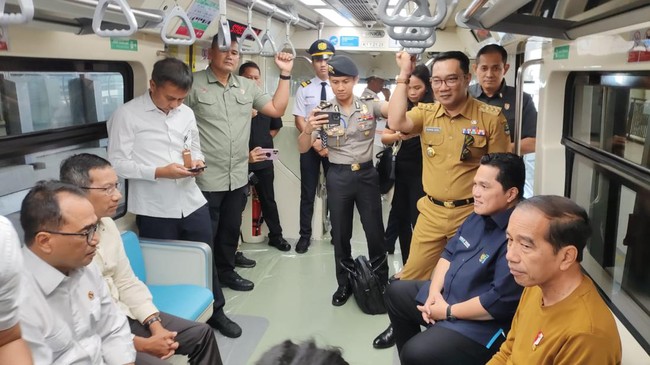 Selain itu, ada juga Pj Gubernur DKI Jakarta Heru Budi Hartono, Gubernur Jawa Barat Ridwan Kamil, Kapolda Metro Jaya Irjen Karyoto, Kapolda Jawa Barat Irjen Akhmad Wiyagus, hingga Pangdam Jaya Mayjen M Hasan. Kemudian, 30 influencer, seperti Olga Lydia hingga Ulin Yusron juga ikut menjajal LRT bersama Jokowi.