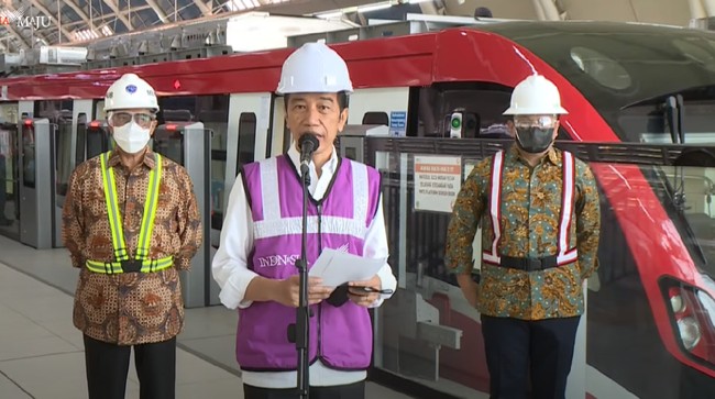 Presiden Joko Widodo (Jokowi) mengungkap proyek Lintas Rel Terpadu (LRT) Jabodebek baru tahap pertama. Jokowi mengatakan nantinya LRT ini akan melintasi wilayah dari Bogor hingga Tangerang.