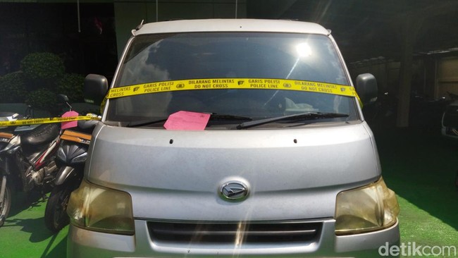 Sebuah mobil jenis minibus dengan balutan garis polisi terparkir di halaman Polsek Pademangan, Jakarta Utara (Jakut). Mobil ini menjadi saksi bisu tewasnya Hasanuddin (42), yang diduga dianiaya oleh empat petugas sekuriti di Ancol.