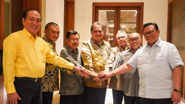 "Tentu tadi dari senior Partai Golkar, dari Pak JK, Pak Aburizal Bakrie, Pak Agung (Laksono), Pak Theo (Sambuaga), Pak Hatta, tentu berharap bahwa partai ini solid. Tidak ada yang mengganggu Partai Golkar, karena sebagai partai nomor dua terbesar di Indonesia ini mewakili institusi politik dan institusi demokrasi," tutur Airlangga.