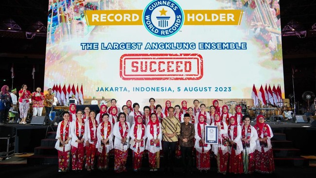 Indonesia berhasil memecahkan Guinness World Records (GWR) melalui pergelaran angklung terbesar di dunia yang diikuti oleh 15.110 peserta di Stadion Utama Gelora Bung Karno, Jakarta (5/8). Pergelaran akbar ini dihadiri oleh Presiden Republik Indonesia Joko Widodo dan Wakil Presiden Ma'ruf Amin bersama beberapa Menteri Kabinet Indonesia Maju.