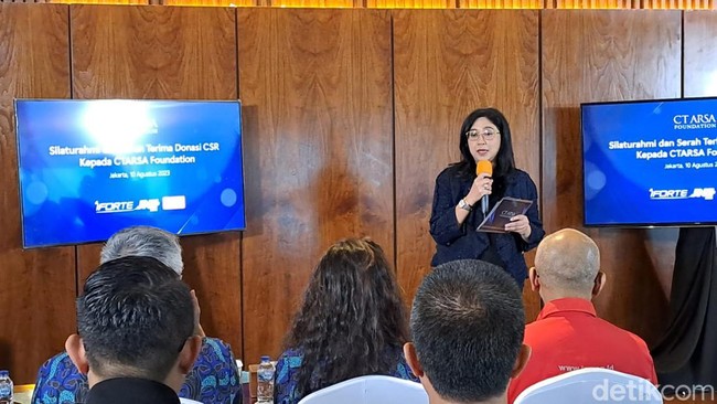 "Kita memang CT ARSA Foundation ini berdiri sejak tahun 2005 setelah tsunami menghantam Aceh. Ini setelah itu kita terus, terus dan terus untuk bagaimana caranya untuk dapat memutus mata rantai kemiskinan dengan pendidikan yang berkualitas dan juga kesehatan yang optimal," kata Anita usai acara silaturahmi dan serah terima donasi CSR kepada CT ARSA Foundation, di Menara Bank Mega, Jakarta Selatan, Kamis (10/8/2023).