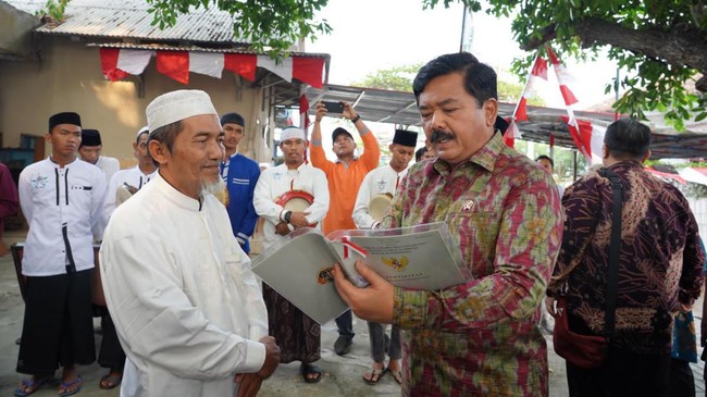 Menteri Agraria dan Tata Ruang/Kepala Badan Pertanahan Nasional (ATR/BPN), Hadi Tjahjanto menyerahkan 386 sertifikat tanah di Pulau Panggan, Kabupaten Kepulauan Seribu. Dari 386 itu, Hadi menyerahkan secara door to door 35 sertifikat hasil program Pendaftaran Tanah Sistematis Lengkap (PTSL) dan satu sertifikat tanah wakaf.