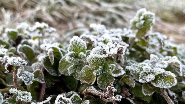 Embun es sempat menyelimuti tanaman hingga tenda pendaki di kawasan Taman Nasional Gunung Ciremai (TNGC), Jawa Barat. Petugas mengatakan fenomena ini terjadi karena kawasan tersebut mengalami suhu rendah.