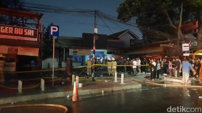 Rumah makan dan tempat parkir di depan Gandaria City, Kebayoran Lama, Jakarta Selatan, yang terbakar sudah padam. Petugas masih di lokasi untuk melakukan pendinginan.