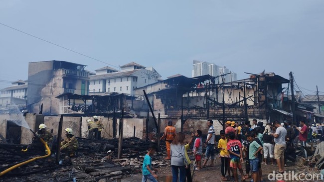 "Kalau kronologinya berawal dari korsleting listrik. Tapi masih dugaan ya dan masih diselidiki oleh Kepolisian Muara Angke," kata Sekretaris Kelurahan Pluit M Djahruddin kepada wartawan di lokasi, Sabtu (12/8/2023).
