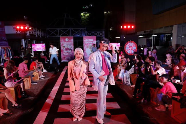 Relawan Ganjar Pranowo yang tergabung dalam Gabungan Seniman Indonesia (GSI) menggaet puluhan anak muda Citayam Fashion Week (CFW) untuk menggelar Street Fashion Show bertema Barbie Concept di Blok M Square, Jakarta Selatan (Jaksel), Sabtu (12/8). Kegiatan ini mengajak influencer, kreator konten, perancang busana, selebgram, dan juga TikToker.