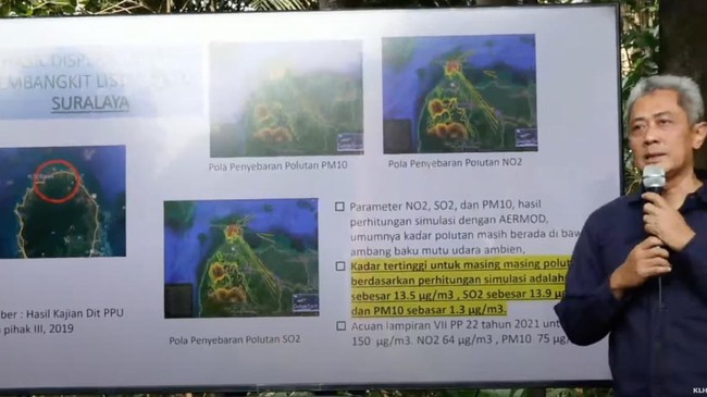 Sigit kemudian mengungkap hasil modelling terkait pencemaran polusi. Dia mengatakan polusi di sekitaran PLTU Suralaya tak berkaitan dengan pencemaran di Jakarta, melainkan mengarah ke Selat Sunda.