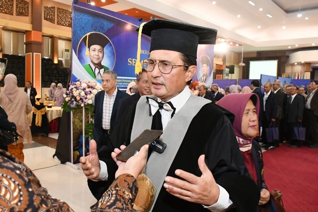 "Selamat kepada kedua guru besar, kami bangga dengan apa yang disampaikan tersebut. Saya juga selalu menunggu lahirnya profesor-profesor baru dari UB," ujar Fadel.