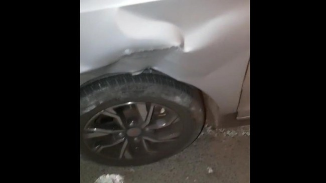 Dia mengatakan kabel yang melintang tersebut kemudian menghantam bagian mobilnya. Dia menyebut mobilnya sampai rusak gara-gara terkena kabel melintang.