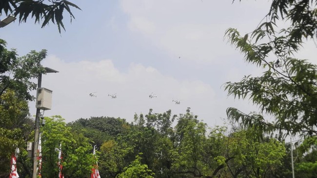 TNI Angkatan Udara (AU) menyiapkan puluhan pesawat dan helikopter untuk menyambut HUT ke-78 Republik Indonesia (RI). Pesawat-pesawat tempur TNI AU itu melaksanakan geladi kotor dengan bermanuver di atas langit Istana Negara, Jakarta.