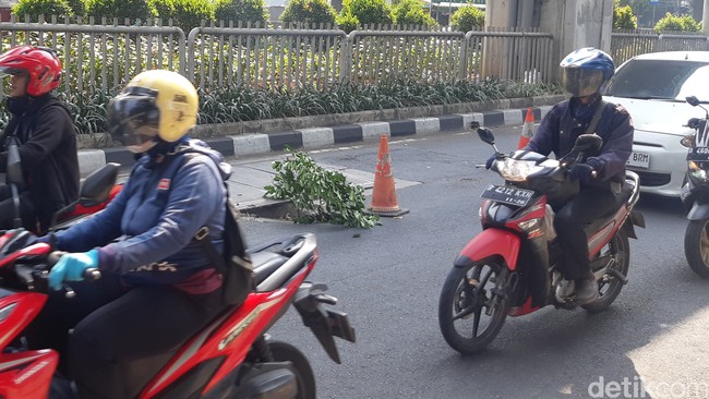 Pada pagi hari, kendaraan baik mobil dan sepeda motor terlihat melambat untuk menghindari lubang. Terdapat ranting pohon dan kerucut lalu lintas berwarna oranye (traffic cone) sebagai pendanda bahwa di lokasi itu terdapat lubang, agar tak ada kendaraan terperosok.