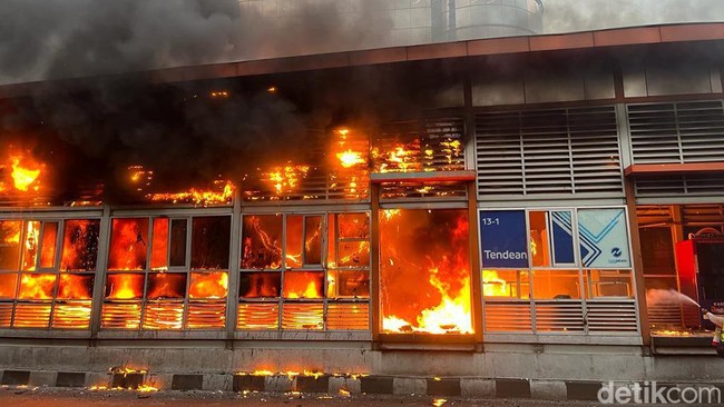 Halte TransJakarta Tendean di Jakarta Selatan terbakar. TransJakarta menyatakan pelanggan dapat menggunakan Halte TransJakarta Rawa Barat untuk naik dan turun bus.