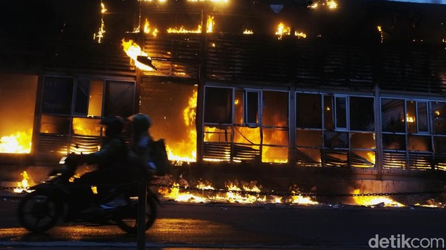 Untuk diketahui, kebakaran terjadi di Halte TransJakarta Tendean sekitar pukul 17.37 WIB. Tampak api membakar bagian dalam dan luar halte.
